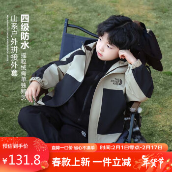 Left West Boys' Coat 2024 Spring Children's Mountain Outdoor Splicing Sports and Leisure Top Khaki 120