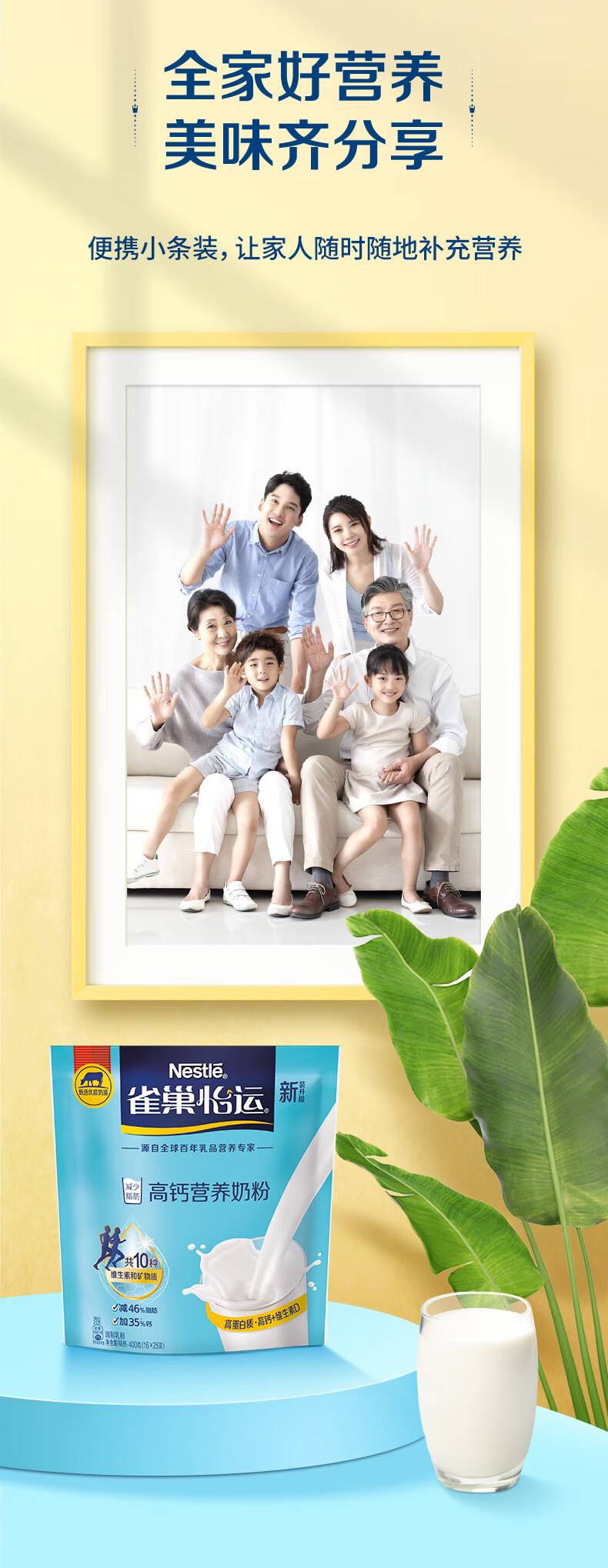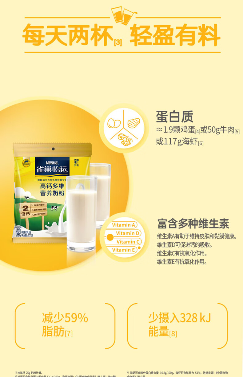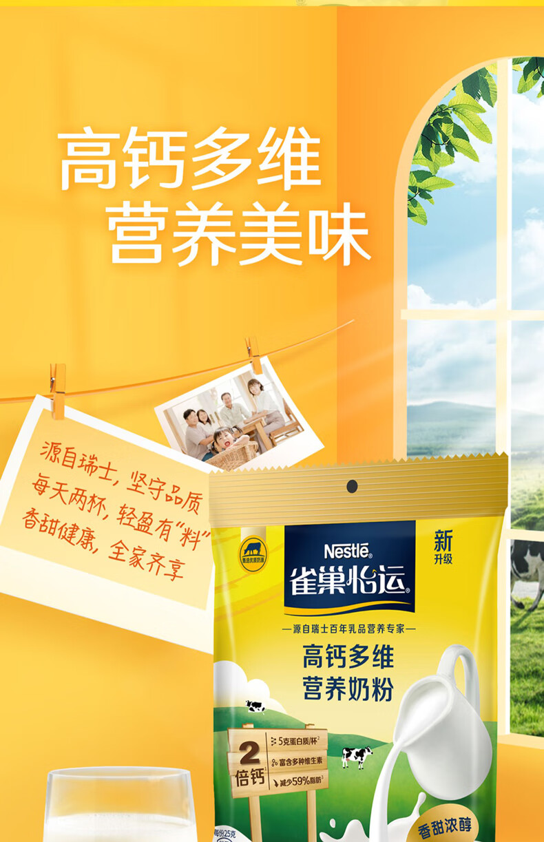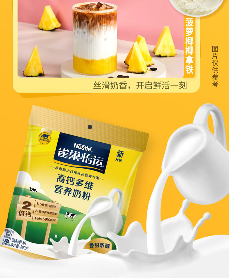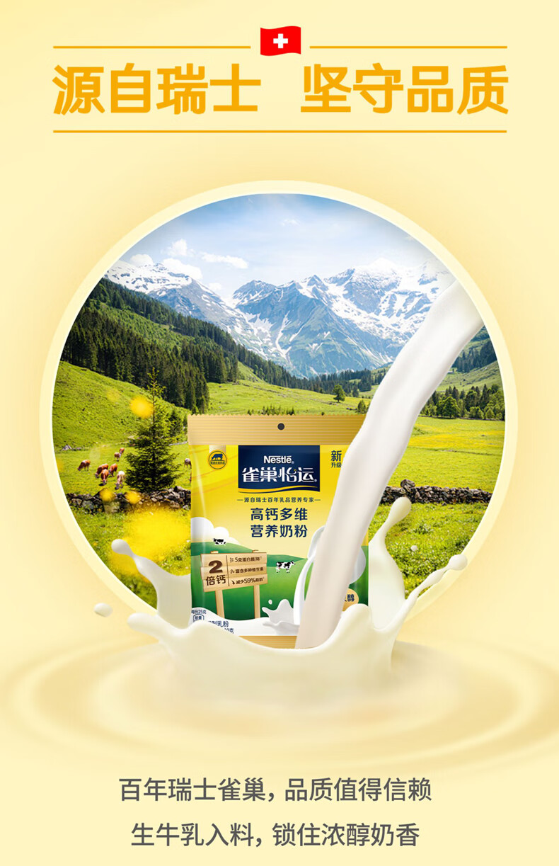 商品名称:雀巢(Nestle) 怡运高钙营养奶粉成人学生男女士牛奶粉 850克罐装