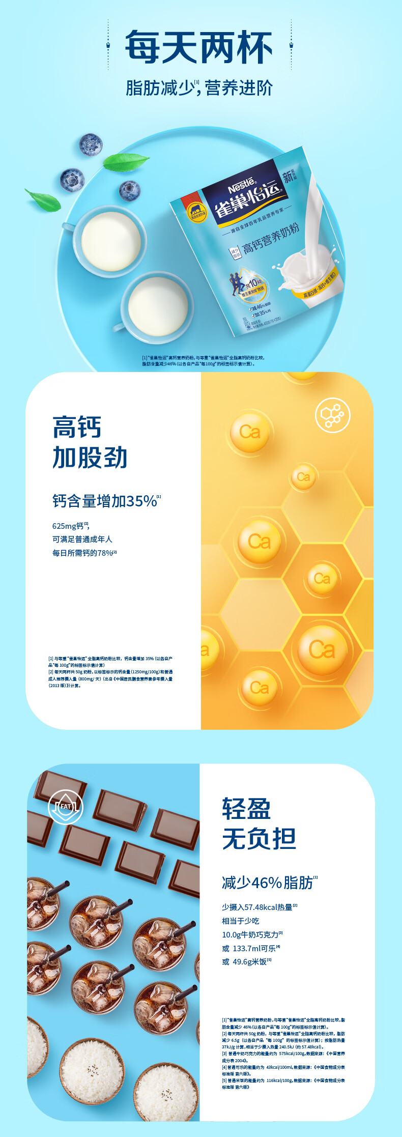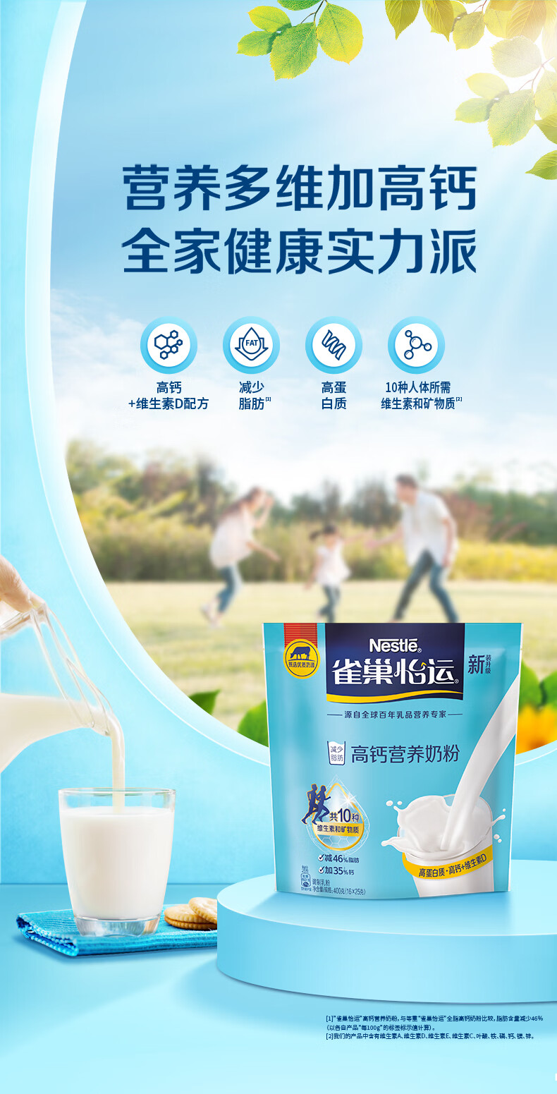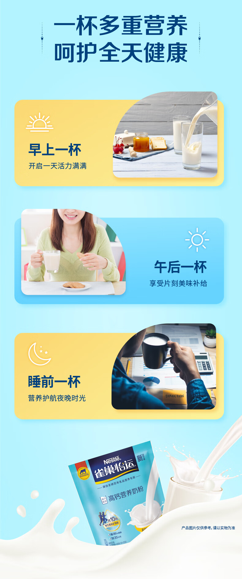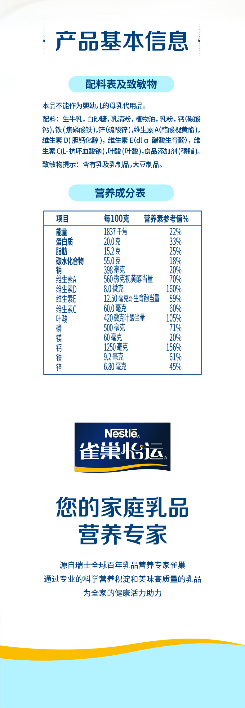商品名称:雀巢(Nestle) 怡运高钙营养奶粉成人学生男女士牛奶粉 850克罐装