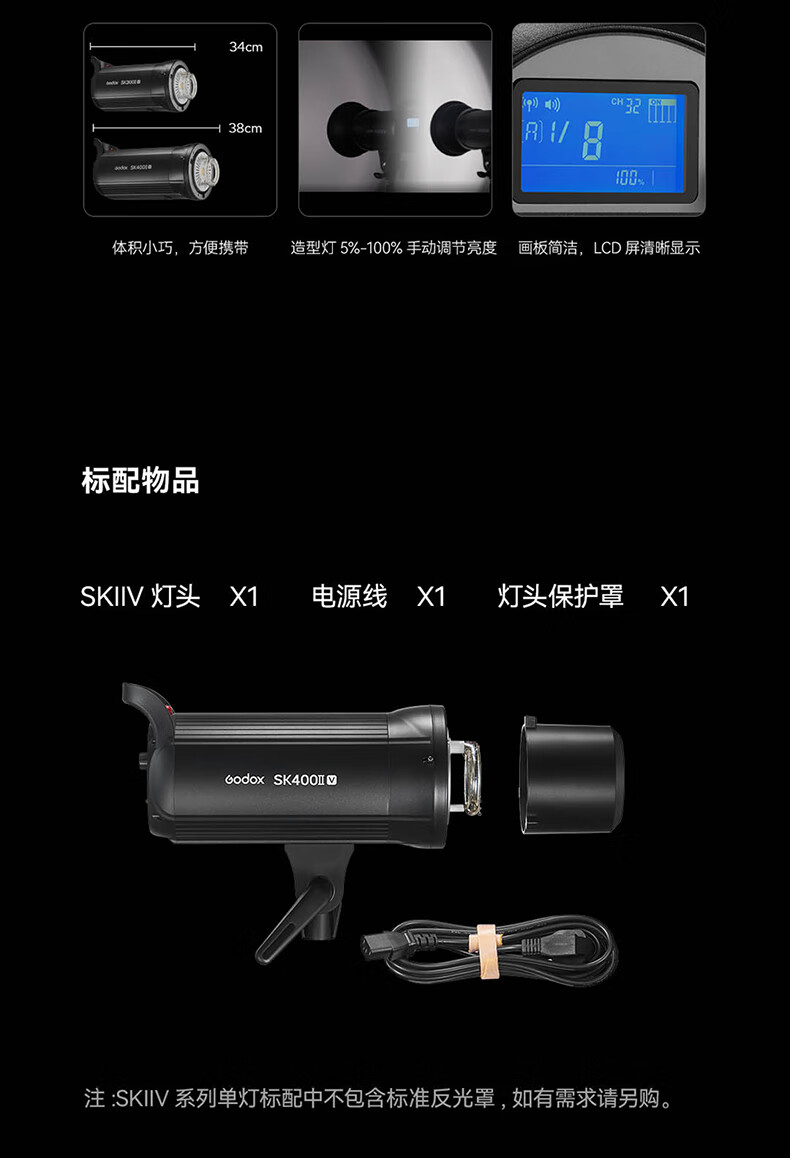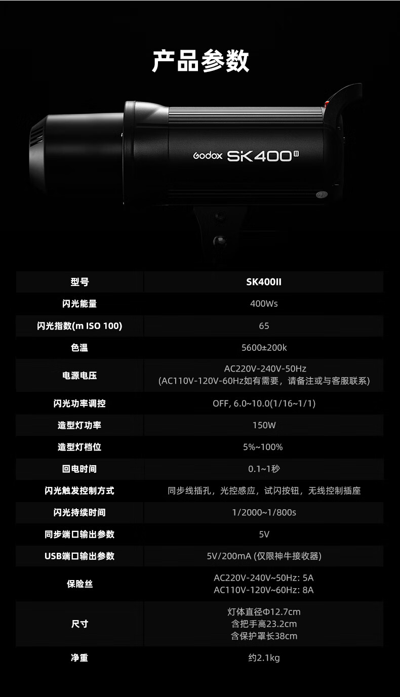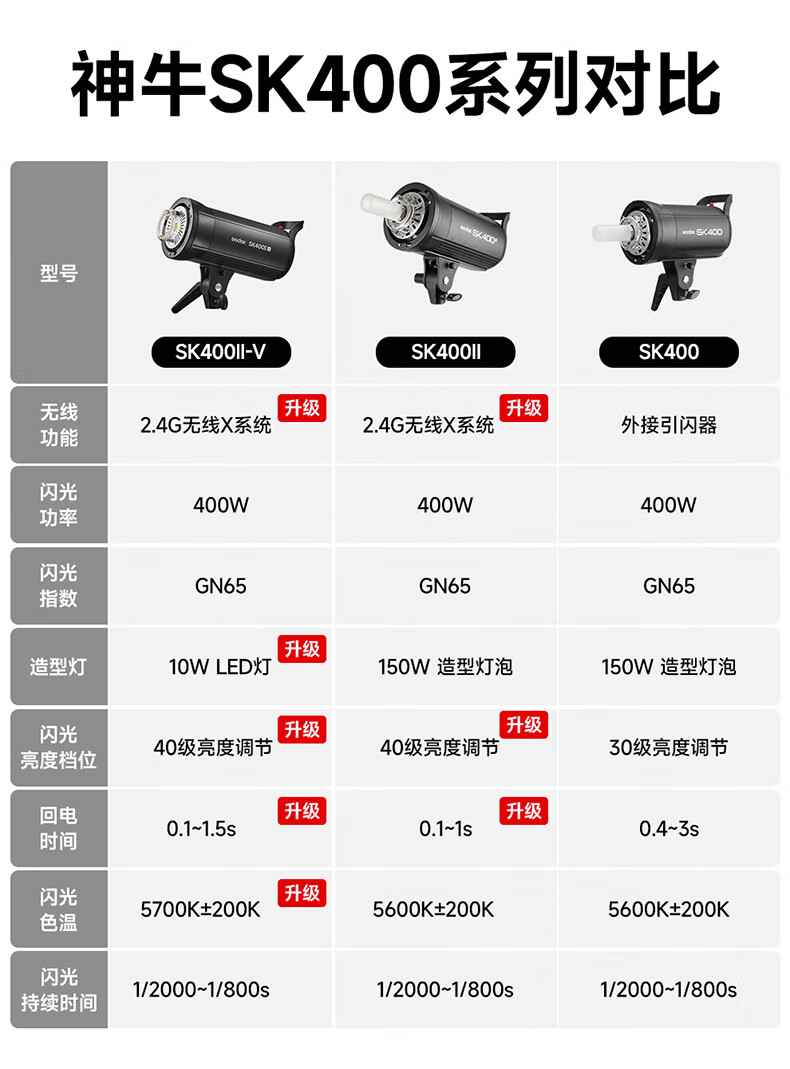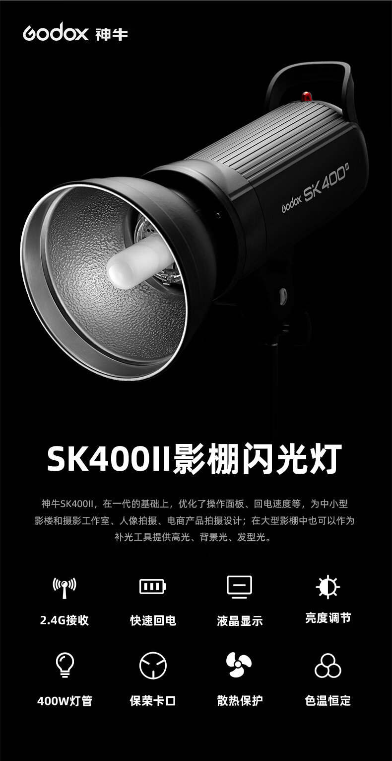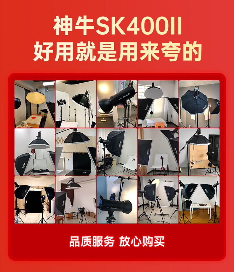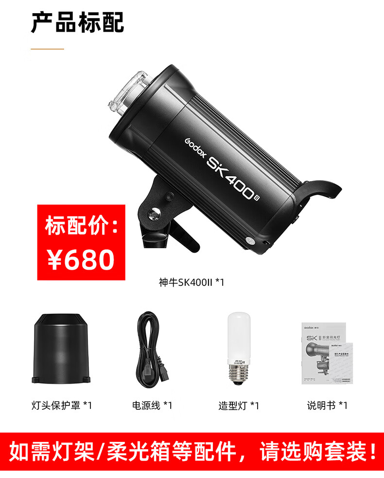 商品名称:神牛SK400II二代闪光灯影棚证件照人像模特电商静物补光摄影灯影楼影视灯 SK400II 三灯套装+礼包